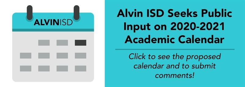Alvin ISD Seeks Public Input on Academic Calendar Submit comments November 1 - 15