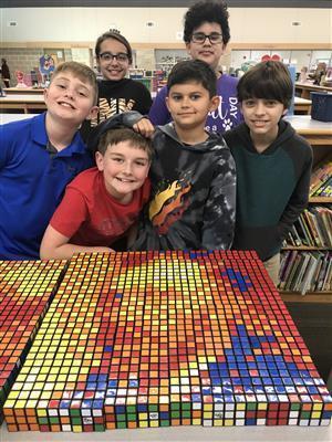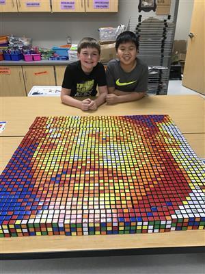 Hasse Elementary was recently involved in some fun activities that combine art, math and puzzle solving. 5th grade math teacher, Jennifer Zamora decided to become a Rubik’s cube ambassador as an innovative way to teach her students geometry and problem solving. Zamora graciously offered the cubes to art teacher, Lynette LeCompte and made the suggestion to have her art students take the Rubik’s cube challenge. Students were challenged to use 100 cubes to make a portrait of the Mona Lisa. Students responded to the challenge and finished the portrait in less than a week. The students were so excited and enthusiastic to keep going so the next week students began work on a portrait of Vincent Van Gogh. Their latest challenge coincides with Black History Month and included 225 cubes. The subject was Dr. Martin Luther King, Jr. Students were so excited to get it completed they gave up eating lunch with their classmates and recess time to work on the mosaic. Zamora and LeCompte are hoping that this is just the beginning and are planning to write a grant to purchase cubes for the school.