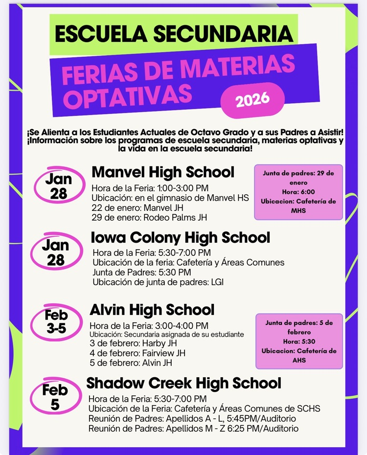 The Alvin ISD Board of Trustees approved the 2026-2027 Academic Calendar in January. The full calendar is now up under "Calendar and Campus Hours"